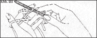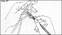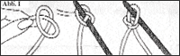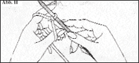 Man misst also diese Fadenlänge und bildet an dem so ermittelten Punkt für die 1.Masche eine Schlinge, wie Abb. 1 zeigt.